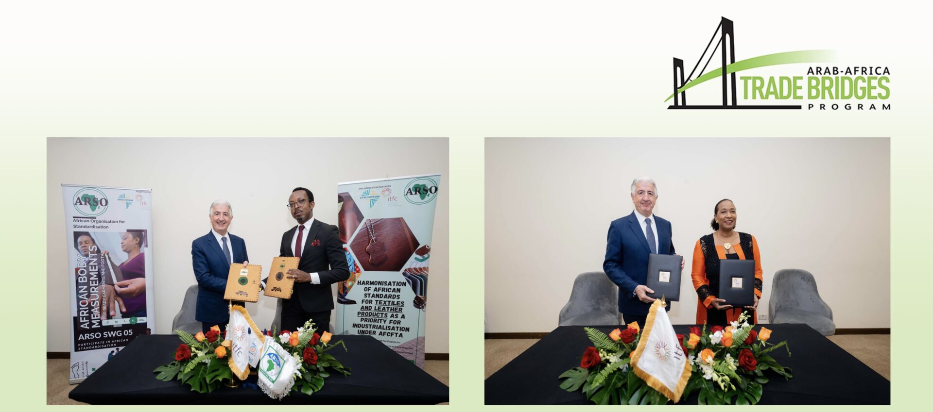 Hani Salem Sonbol, Directeur général de l’ITFC, Directeur Général par intérim de l’ICD, et Secrétaire Général du Programme ‘’Comment Exporter avec la ZLECAf’’, ainsi que le Dr. Hermogene Nsengimana, Secrétaire général de l’ARSO, ont signé un accord de partenariat dans le cadre du Programme ‘’Comment Exporter en Afrique’’. Cet accord clé visant à harmoniser les normes africaines pour les produits textiles et les produits en cuir garantit un tournant décisif dans l’industrie de la mode africaine. Il renforce en outre l’engagement du Programme ‘’Comment exporter avec la ZLECAf’’ à favoriser le développement du commerce et à améliorer la qualité en Afrique, en s’appuyant sur le succès de la récente initiative d’harmonisation des normes relatives aux produits pharmaceutiques. Les deux initiatives d’harmonisation sont en ligne avec les objectifs de l’accord de la Zone de libre-échange continentale africaine ( ZLECAf ).