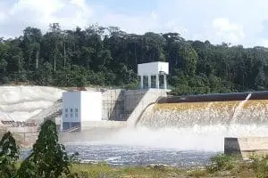 La centrale hydroélectrique de Ngoulmendjim, d’une puissance installée de 82 MW pour une production annuelle estimée à 550 GWh, est située sur le fleuve Komo, au cœur de la province de l’Estuaire. Développée par Asokh Energy, entreprise gabonaise créée par le consortium FGIS-Eranove, elle permettra de répondre à la demande croissante d’énergie électrique du pays, notamment celle du Grand-Libreville, et d’accroitre de façon significative la part d’énergie renouvelable du mix énergétique.