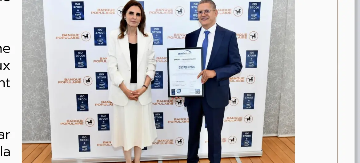Le Groupe BCP a obtenu la certification ISO 37001 – version 2025, délivrée par le cabinet Certi-Trust, à l’issue d’un audit approfondi mené du 21 au 25 juillet 2025.