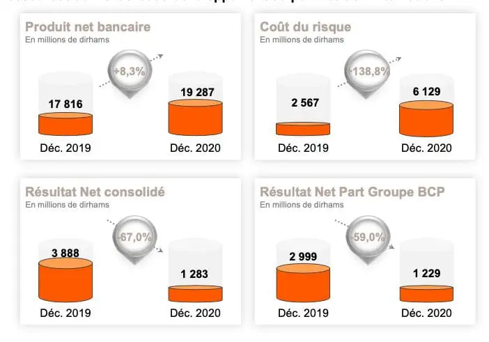 En effet, le produit net bancaire consolidé est passé de 17,8 à 19,3 milliards de dirhams, s’appréciant de quelque 8,3% en 2020 par rapport à 2019. Cette hausse s’explique par la bonne tenue des entités consolidées l’année précédente, à laquelle s’ajoute un changement de périmètre. Il y a une forte dynamique du PNB des filiales à l’international qui évolue de +34% tiré à la fois par la bonne performance des filiales historiques (+7% de PNB) et par l’impact de l’intégration des trois nouvelles acquisitions. Car, faut-il le rappeler, de nouvelles acquisitions ont été réalisées, notamment les entités du groupe français Banque Populaire Caisse d’épargne à Madagascar, au Cameroun et au Congo.