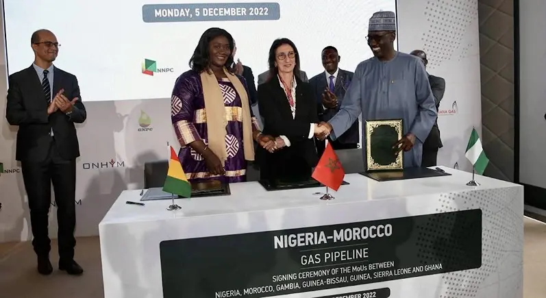 Le gigantesque projet d’un gazoduc de 25 milliards de dollars, reliant le Nigeria au Maroc pour approvisionner les marchés européens en GNL (gaz naturel liquéfié), prend forme, rapporte notre confrère Sika Finance s’appuyant sur les déclarations de la directrice générale de l’Office national (marocain) des Hydrocarbures du Maroc (Onhym). En effet, Abuja et Rabat s’apprêtent à poser la toute dernière pierre juridique de ce projet aux dimensions titanesques. Un accord intergouvernemental portant sur la construction de ce gazoduc dont le coût est estimé à 25 milliards de dollars, sera signé cette année, confirme Amina Benkhadra.