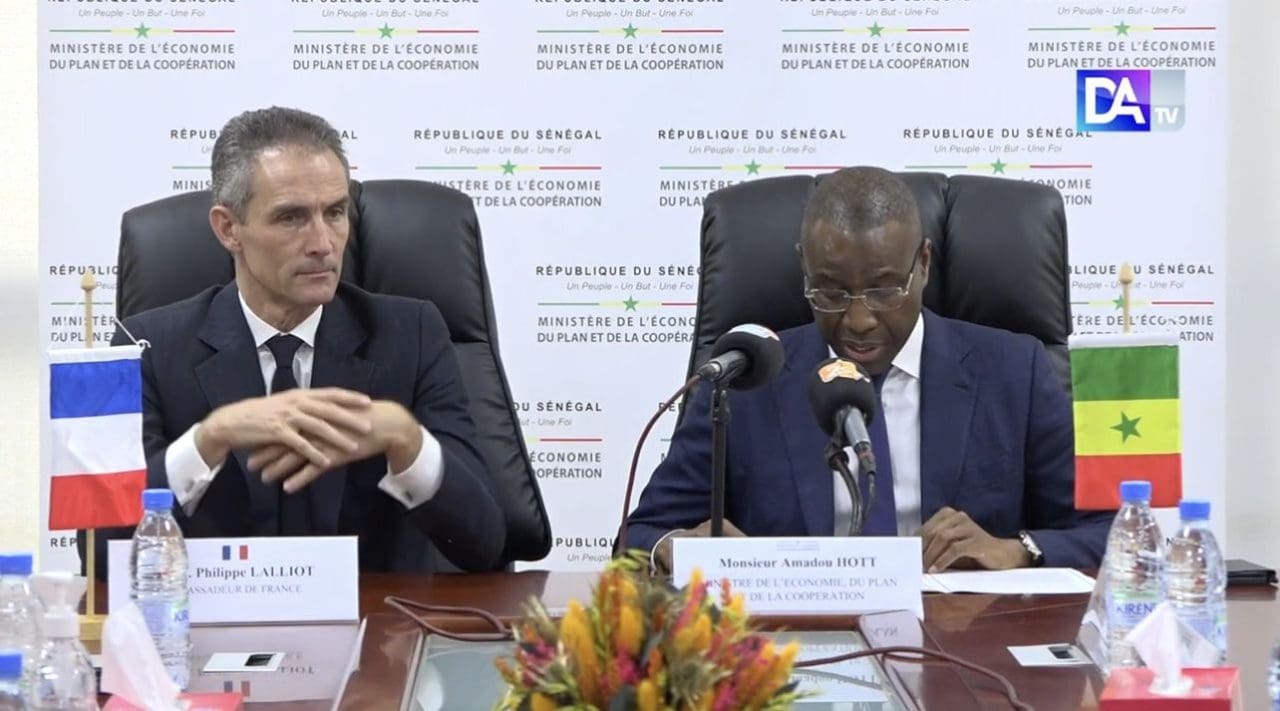 Le ministre sénégalais de l’Economie, du Plan et de la Coopération, Amadou Hott et l’ambassadeur de la France au Sénégal, Philippe Lalliot ont signé, jeudi 16 juin, les documents de la convention de financement, en présence du directeur pays de l’AFD, Alexandre Pointier.